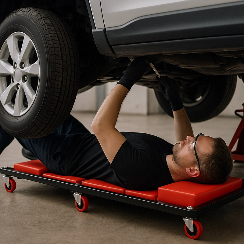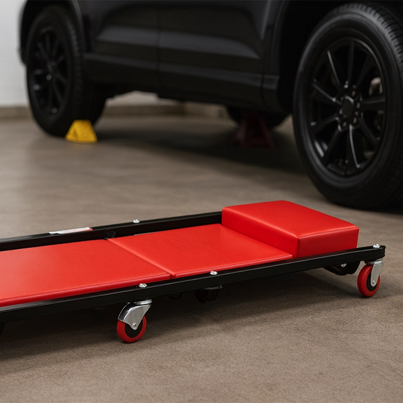 Una camilla para mecánico plegable de 36” es una herramienta esencial en talleres automotrices y garajes, diseñada para proporcionar comodidad, seguridad y facilidad de movimiento a los técnicos mientras realizan trabajos debajo de los vehículos. Esta camilla rodante combina un marco de acero resistente con un acolchado de vinil en color rojo, ofreciendo durabilidad y confort durante largas jornadas de trabajo.