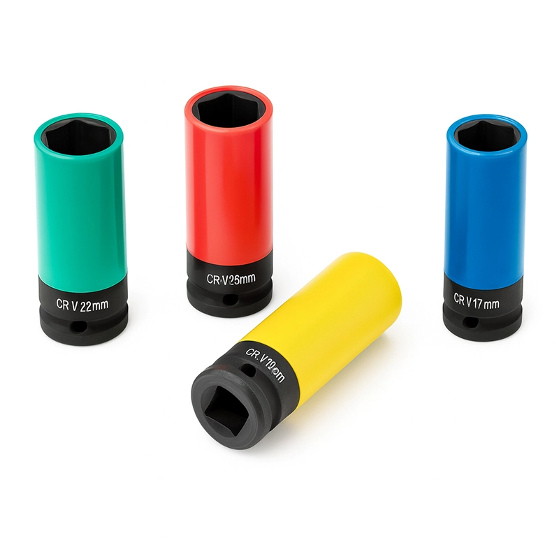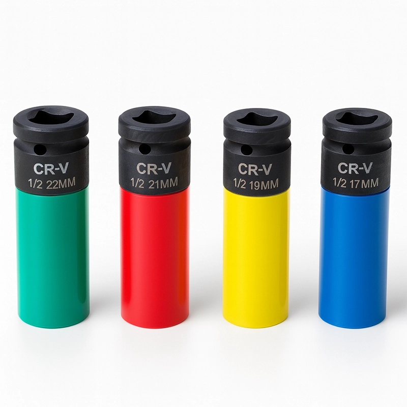 KIT DE DADOS DE IMPACTO 1/2” (4 PIEZAS) — PARED DELGADA CON PROTECTOR