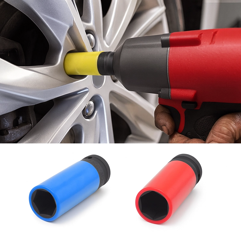 Juego profesional de dados de impacto 1/2” de pared delgada (thin-wall) con revestimiento de nylon, diseñados para desmontar y montar tuercas de rueda sin dañar rines pintados o de aleación. Fabricados en acero cromo-molibdeno (CR-MO) de alta resistencia, ofrecen gran durabilidad, par de torsión elevado y ajuste preciso. Su estuche rígido permite un transporte y almacenamiento seguro en talleres, flotas o vehículos de servicio.