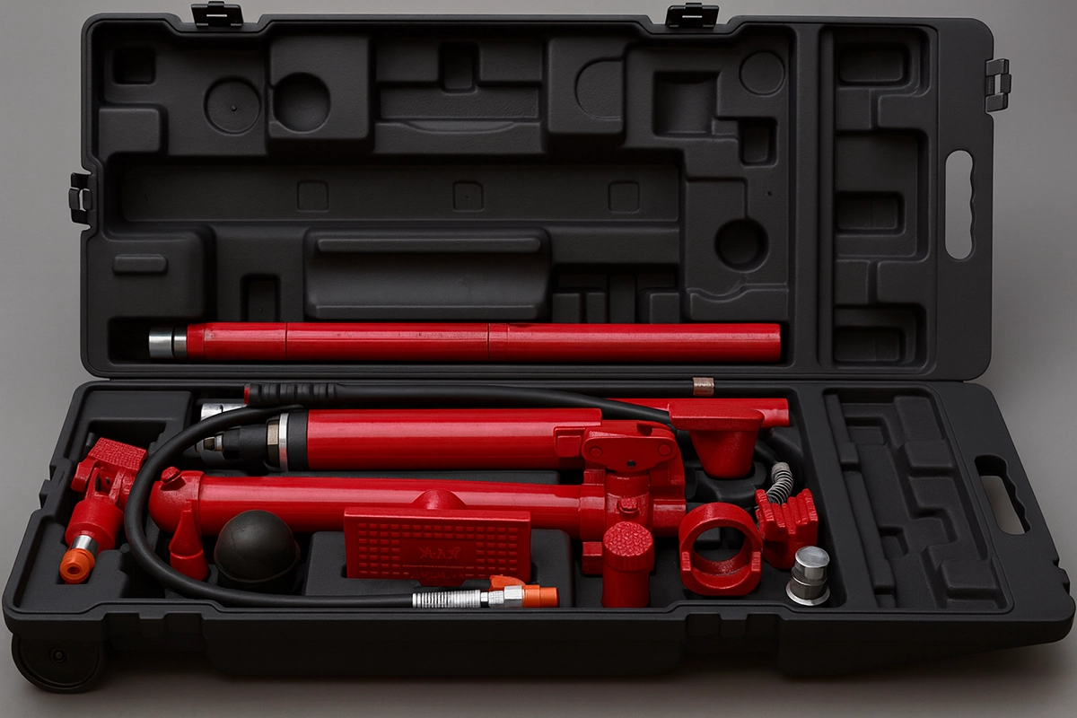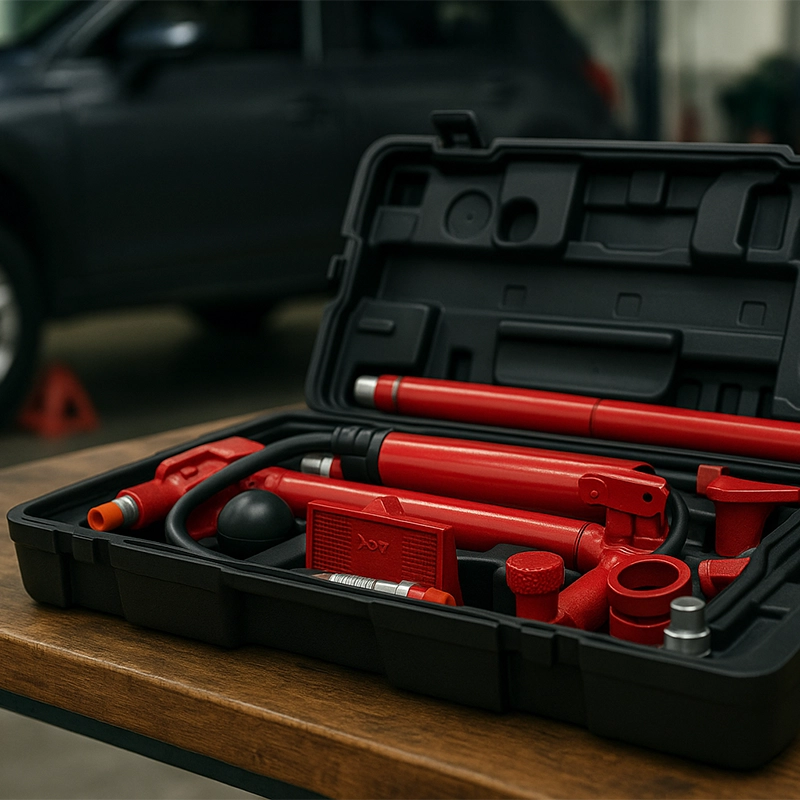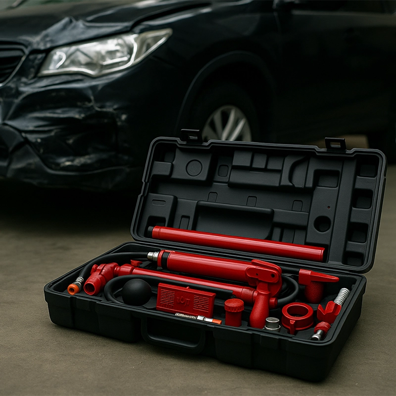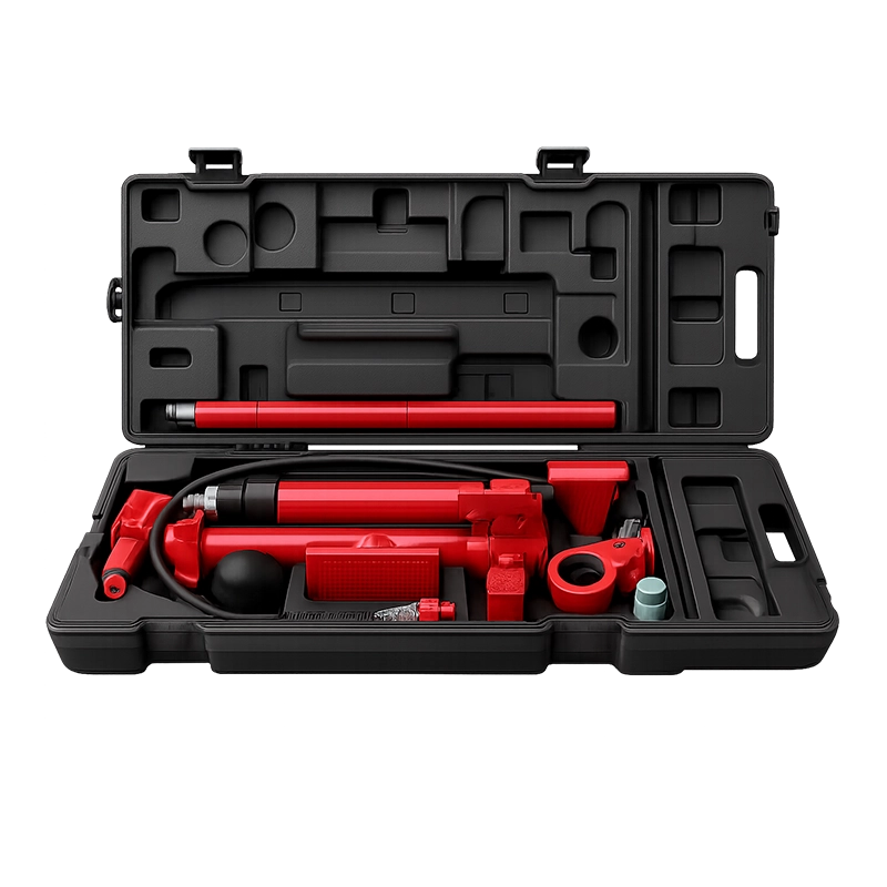 El kit de reparación de carroceria hidráulica portátil de 10 toneladas está diseñado para empujar, extender y presionar paneles de carrocería de vehículos, así como diversos componentes y ensamblajes. Su sistema hidráulico robusto garantiza un alto rendimiento en aplicaciones de reparación de marcos y alineación estructural.
