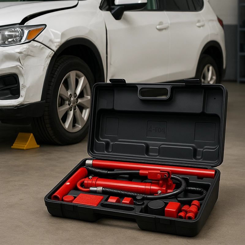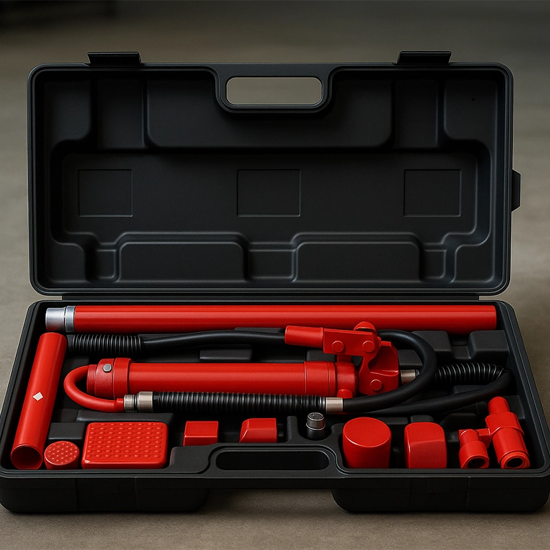 El kit de reparación de carroceria hidráulica portátil de 4 toneladas está diseñado para empujar, extender y presionar paneles de carrocería de vehículos, así como diversos componentes y ensamblajes. Su sistema hidráulico robusto garantiza un alto rendimiento en aplicaciones de reparación de marcos y alineación estructural. Fabricado en acero de alta calidad y con recubrimiento de pintura libre de plomo, garantiza una larga durabilidad y resistencia a aceites, grasas y suciedad. Su bomba cuenta con un sistema automático de sobrecarga para evitar daños en los cilindros y en el equipo.